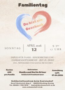 herzlich laden wir Euch zu einem besonderen Tag für Paare und Familien am Sonntag, 12. April 2026 ins Schönstattzentrum beim Canisiushof ein – mit dem Thema: