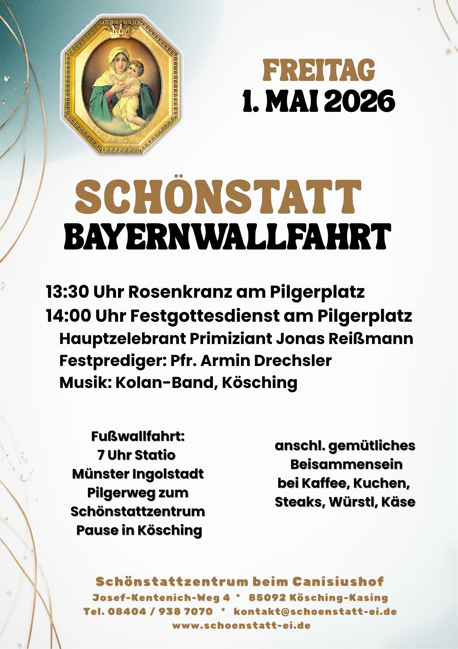 Es besteht die Möglichkeit zur Fußwallfahrt: um 7 Uhr Statio im Münster Ingolstadt
